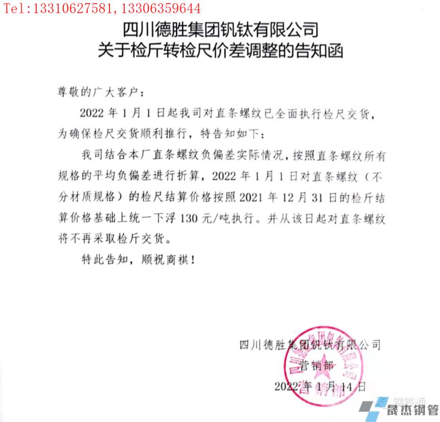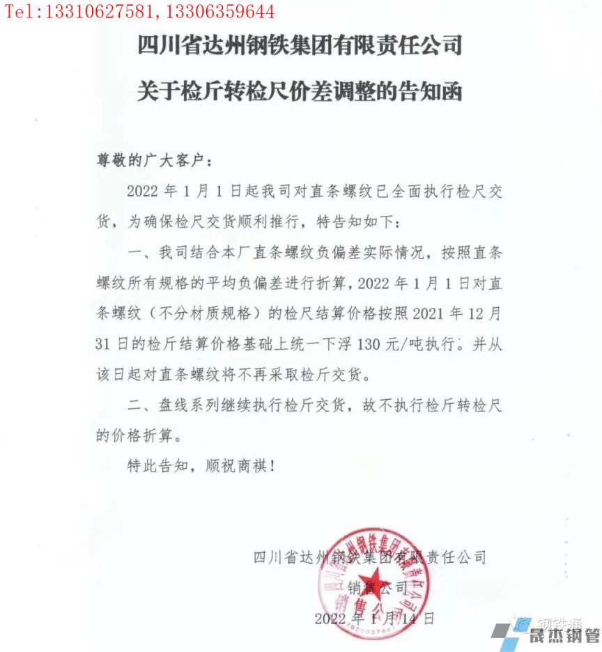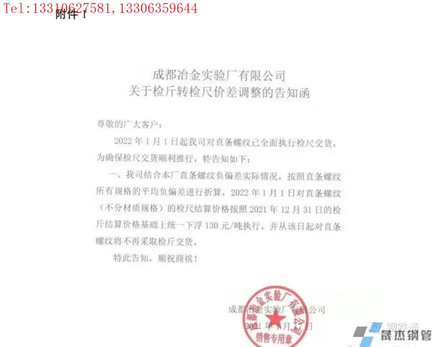 免責聲明:本網站(山東聊城晟杰無縫鋼管廠m.maturesexus.com)刊載的“四川多家鋼企發布檢斤轉檢尺價差調整通知”等均源于網絡,版權歸原作者所有,且僅代表原作者觀點,本文所載信息僅供參考。轉載僅為學習與交流之目的,如無意中侵犯您的合法權益,請及時聯系刪除。本網站刊登此篇文章并不意味著本站贊同其觀點或證實其內容的真實性,我們不對其科學性、嚴肅性等作任何形式的保證。如果侵犯了您的版權,請盡快聯系我們予以撤銷,謝謝合作!