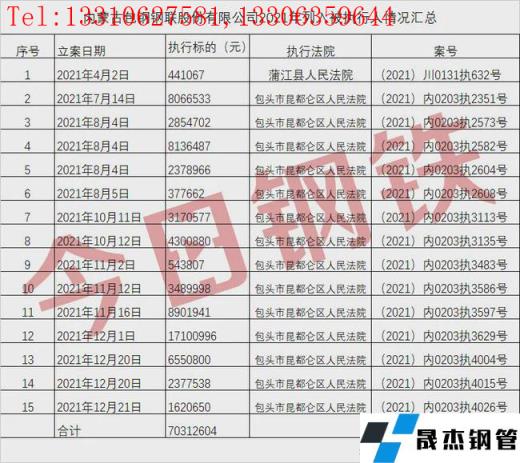 免責聲明:本網站(山東聊城晟杰無縫鋼管廠m.maturesexus.com)刊載的“超7000萬!包鋼股份年內15次被法院執行!”等均源于網絡,版權歸原作者所有,且僅代表原作者觀點,本文所載信息僅供參考。轉載僅為學習與交流之目的,如無意中侵犯您的合法權益,請及時聯系刪除。本網站刊登此篇文章并不意味著本站贊同其觀點或證實其內容的真實性,我們不對其科學性、嚴肅性等作任何形式的保證。如果侵犯了您的版權,請盡快聯系我們予以撤銷,謝謝合作!