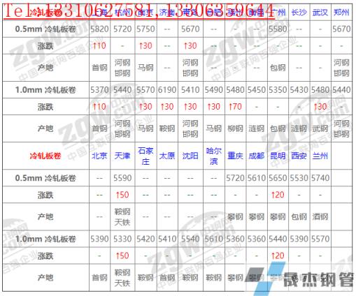 全國23個主要市場1.0mm 冷軋板卷平均價格5475元/噸,較上個交易日上調12元/噸。