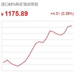 1月21日,跟據今日鐵礦公布的鐵礦石價格來看,進口65%粉礦現貨貿易價格1175.89元/噸,較前一個交易日上漲4.51,漲幅0.39%;進口54%粉礦到岸價格161.57美元/噸,較前一個交易日上漲1.45,漲幅0.91%;國產65%鐵精礦價格1009.72,元/噸,較前一個交易日上漲1.42,漲幅0.14%。