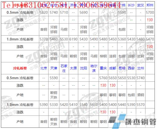 全國(guó)23個(gè)主要市場(chǎng)1.0mm 冷軋板卷平均價(jià)格5480元/噸,較上個(gè)交易日上調(diào)4元/噸。