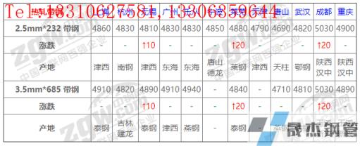 全國(guó)12個(gè)主要市場(chǎng)2.5mm*232 帶鋼平均價(jià)格4843元/噸,較上個(gè)交易日上調(diào)4元/噸。