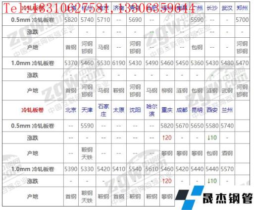 全國(guó)23個(gè)主要市場(chǎng)1.0mm 冷軋板卷平均價(jià)格5485元/噸,較上個(gè)交易日上調(diào)1元/噸。