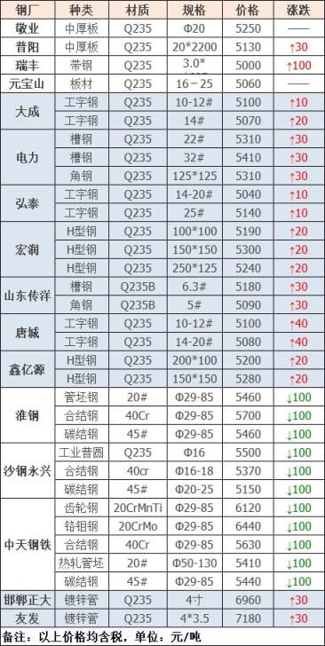 3月1日廣東河源德潤(rùn)鋼鐵廢鋼價(jià)格漲50元:鋼筋切粒3530;邊角料,新鋼板料3500;純鋼筋頭,直鋼筋3480;模具鋼、料頭圓鋼、軌道鋼、火車(chē)輪3480;硅鋼片停收;冷軋、熱軋、碎料沖子3430;優(yōu)重3480;鍛打料、馬蹄鐵3480;重廢3450;機(jī)械生鐵、高碳鋼、鑄鋼件、生熟混裝3450;厚剪3400,不含稅。