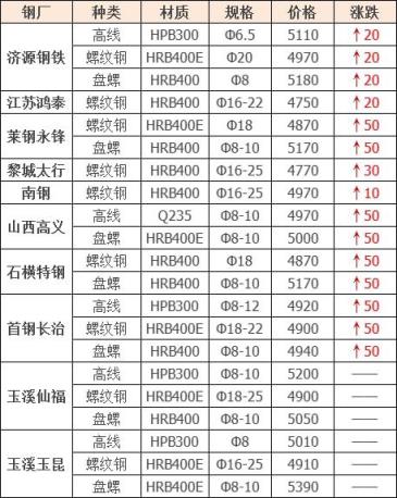 漲幅最高為萊鋼永鋒建材;