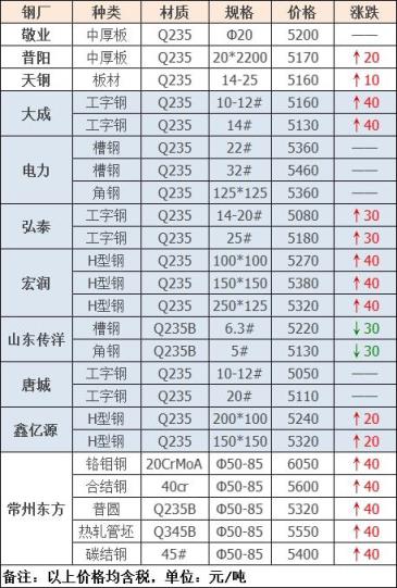 3月4日鎮江鴻泰廢鋼價格漲30元:新鋼板料3430工槽鋼3380鋼筋頭3380模具鋼3380料頭、沖子3380鋼筋壓塊3330馬蹄鐵3330冷軋、熱軋、沖皮、矽鋼片3330重廢一3330鋼筋毛料3280精爐料3220破碎料3070-3190剪切料3080鋼刨花2950-3000數控刨花2900-2950普通刨花2840-2870鋼絲繩2820輕鋼龍骨、車架子2820,不含稅