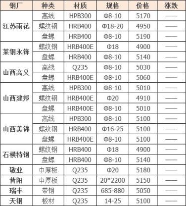 上調(diào)5家,占比29.5%,調(diào)價(jià)幅度20-50元/噸,
