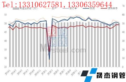 1月份,中國制造業采購經理指數(PMI)為50.1%,比上月回落0.2個百分點,部分制造行業進入傳統生產淡季,加之近期市場需求放緩,制造業擴張力度有所減弱。其主要特點:一是生產持續擴張。生產指數為50.9%,連續三個月高于臨界點,但比上月下降0.5個百分點,制造業生產擴張步伐有所放慢。黑色金屬冶煉及壓延加工、有色金屬冶煉及壓延加工等行業采購量指數和原材料庫存指數均升至擴張區間,企業采購力度明顯加大,主要原材料庫存量較上月上升。二是需求仍顯不足。新訂單指數為49.3%,比上月下降0.4個百分點,繼續位于收縮區間,制造業市場需求持續偏弱。三是價格指數同步回升。主要原材料購進價格指數和出廠價格指數分別為56.4%和50.9%,高于上月8.3和5.4個百分點,重回擴張區間,制造業市場價格總體水平較上月上漲。從行業情況看,石油煤炭及其他燃料加工、有色金屬冶煉及壓延加工等行業兩個價格指數均升至60.0%以上高位區間,相關行業原材料采購價格和產品銷售價格明顯上漲。四是企業預期有所改善。生產經營活動預期指數為57.5%,高于上月3.2個百分點,制造業企業信心有所回升。從行業情況看,調查的21個行業中,19個行業生產經營活動預期指數位于景氣區間,特別是通用設備、汽車、電氣機械器材等行業生產經營活動預期指數位于60.0%以上高位景氣區間,相關行業企業對近期市場發展前景較為樂觀。