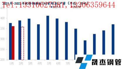 1月全國(guó)優(yōu)特鋼棒材(34家樣本)產(chǎn)量300萬(wàn)噸,環(huán)比減少6.77萬(wàn)噸,2月預(yù)計(jì)產(chǎn)量299萬(wàn)噸;46家樣本1月產(chǎn)量362萬(wàn)噸,環(huán)比減少8.87萬(wàn)噸,2月預(yù)計(jì)產(chǎn)量358萬(wàn)噸。1月優(yōu)特鋼棒材表需358萬(wàn)噸環(huán)比下降38.58萬(wàn)噸。