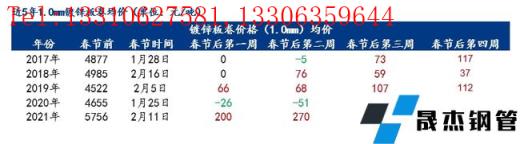 重慶鍍鋅:市場仍處于休市狀態(tài),多數(shù)貿易商暫未開工。重慶1.0*1250*C有花鍍鋅板卷主流無縫厚壁鋼管廠家報價5600元/噸,較節(jié)前并未有變化。由于本地無縫厚壁鋼管廠家檢修,無縫厚壁鋼管廠家資源投放量有所減量,春節(jié)期間預估增加2000噸。貿易商整體庫存壓力尚可承受,對于節(jié)后行情信心較足。