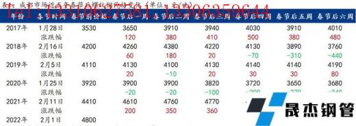 筆者回顧了近5年西南區(qū)域各主要建筑厚壁無(wú)縫鋼管市場(chǎng)價(jià)格,通過(guò)對(duì)節(jié)后六周價(jià)格變化的對(duì)比得出,除2020年春節(jié)后受公共衛(wèi)生事件影響,其余時(shí)間節(jié)后前兩周基本以“開門紅”的上漲行情為主。