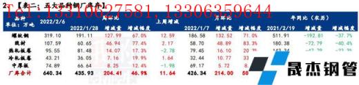 據統計,建材方面,節后第一周建材廠庫增幅突出。從區域來看,各區域均有不同程度增庫,且以華東、華南、華北和西南為主;從省份來看,江蘇、廣西、云南、廣東、山西、福建、安徽等增庫最為突出。主要原因在于節假日期間,運輸停滯,廠庫外發受阻,但省內企業正常生產比例居多,入庫正常,因此導致整體廠庫累增明顯。熱卷方面,本周無縫厚壁鋼管廠家庫存大幅增加,主要增幅地區是華東、華南地區,主要是節中無縫厚壁鋼管廠家生產基本沒有影響,但運力下降導致廠庫累積,主要降幅地區是華中地區,主要是無縫厚壁鋼管廠家生產下降導致廠庫進一步下降。