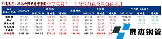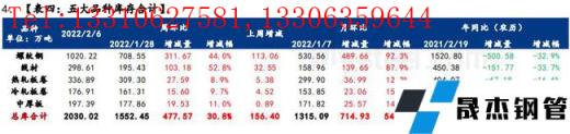 庫存方面,五大品種厚壁無縫鋼管總庫存連續五周累增,環比節前增加477.57萬噸,增幅30.8%;其中建材庫存增加414.85萬噸,增幅為45.9%;板材庫存增加62.72萬噸,增幅9.7%。