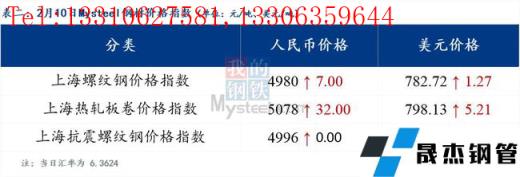 免責(zé)聲明:本網(wǎng)站(山東聊城晟杰無縫鋼管廠m.maturesexus.com)刊載的“2022年02月10日日?qǐng)?bào):鋼材_無縫鋼管價(jià)格指數(shù)上漲6.36元/噸”等均源于網(wǎng)絡(luò),版權(quán)歸原作者所有,且僅代表原作者觀點(diǎn),本文所載信息僅供參考。轉(zhuǎn)載僅為學(xué)習(xí)與交流之目的,如無意中侵犯您的合法權(quán)益,請(qǐng)及時(shí)聯(lián)系刪除。本網(wǎng)站刊登此篇文章并不意味著本站贊同其觀點(diǎn)或證實(shí)其內(nèi)容的真實(shí)性,我們不對(duì)其科學(xué)性、嚴(yán)肅性等作任何形式的保證。如果侵犯了您的版權(quán),請(qǐng)盡快聯(lián)系我們予以撤銷,謝謝合作!