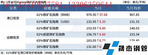 ◎2月10日,全國主港鐵礦石成交110.50萬噸,環(huán)比增26.3%。