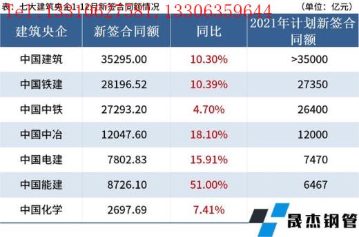 免責聲明:本網站(山東聊城晟杰無縫鋼管廠m.maturesexus.com)刊載的“7家建筑央企2021年新簽合同總額超12萬億元,同比增長12%”等均源于網絡,版權歸原作者所有,且僅代表原作者觀點,本文所載信息僅供參考。轉載僅為學習與交流之目的,如無意中侵犯您的合法權益,請及時聯系刪除。本網站刊登此篇文章并不意味著本站贊同其觀點或證實其內容的真實性,我們不對其科學性、嚴肅性等作任何形式的保證。如果侵犯了您的版權,請盡快聯系我們予以撤銷,謝謝合作!