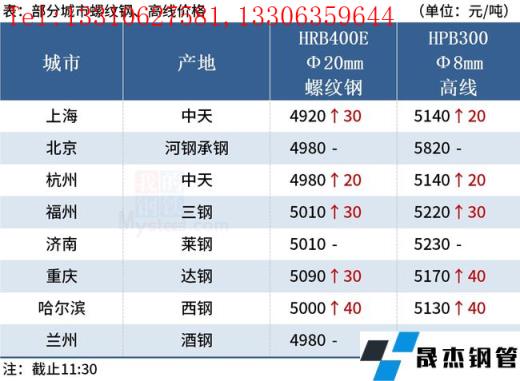 ◎杭州:11日早盤杭州優(yōu)特鋼市場價格部分漲20。現(xiàn)45#Φ30以上主流價格杭5470淮5470南5460,元立(直發(fā))5450中天5460東方5400,40Cr杭5680淮5730;齒輪萊鋼5900,鉻鉬建龍6030淮鋼6080。(單位:元/噸)