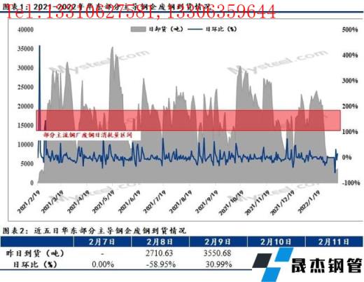 本省無縫厚壁鋼管廠家到貨情況基本處于往年同期低位水平,以本省主導(dǎo)鋼企為例,截止11日統(tǒng)計本省主導(dǎo)鋼企廢鋼到貨昨卸3710.52噸,較前一日增14.75%;今總計到船10條,海船3條,大小車20車。回顧開市以來的到貨情況,本省主導(dǎo)鋼企日均到貨遠(yuǎn)低于日耗水平,完全處于耗庫狀態(tài),且耗庫速度相對較快。因此,為滿足無縫厚壁鋼管廠家日耗所需,主導(dǎo)鋼企廢鋼采購價格拉漲或為大勢所趨。