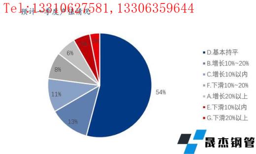 本次調(diào)研樣本企業(yè)中與去年同期相比,預(yù)計(jì)企業(yè)一季度的產(chǎn)值有所增長的占比30%,其中增長10%以上的和增長10%以內(nèi)的分別占比19%和11%;與去年同期相比,預(yù)計(jì)企業(yè)一季度的產(chǎn)值基本持平的占比54%;與去年同期相比,預(yù)計(jì)企業(yè)一季度的產(chǎn)值有所下滑的占比16%。
