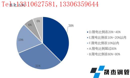 本次調(diào)研存在限電情況的企業(yè)所在地中,限電比例超過80%的占比為6%,限電比例在60%-80%的占比為6%,限電比例在20%-40%的占比為38%,限電比例為20%以內(nèi)的占比為50%。
