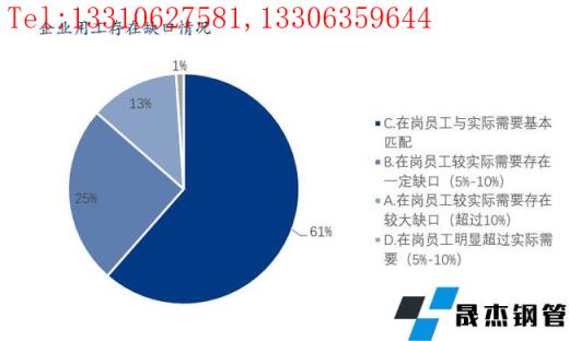 本次調(diào)研樣本企業(yè)中在崗員工數(shù)量較實(shí)際需要存在缺口的企業(yè)占比38%;在崗員工數(shù)量較實(shí)際需要基本匹配的占61%;在崗員工數(shù)量超過實(shí)際需要的占比1%。