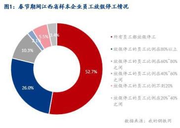 1、今年春節期間江西省樣本企業所有員工都放假停工的企業占調研樣本比例為52.7%,放假停工的員工比例不到20%的企業僅占比5.5%