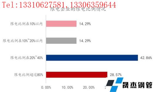 5、調研樣本企業中,存在受到限電影響的企業占比7.07%,限電比例超20%以上的占比達到71.43%,但基本是小范圍影響居多,相當范圍以及大范圍受到限電影響的比例較小,或表明限電影響具有階段性和局部性,并未呈現一刀切的情況。