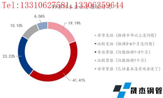 從圖20上看,整體企業資金流能維持半年以上充裕條件的占比19.19%,維持3-6個月周期的占比為41.41%,僅能維持1-3個月周期的的占比為23.23%,僅能維持1個月周期的占比為10.10%,現金流非常緊張的占比為6.06%。