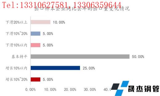 從圖26上看,20.20%的出口企業中,出口價格呈現不同程度上漲的企業占比為40%,基本持平的企業占比為55%,呈現不同程度下降的企業占比為5%。