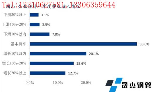 3、對于一季度營業(yè)收入的情況,38.0%的企業(yè)預(yù)計(jì)一季度營業(yè)收入與去年同期基本持平,48.3%的企業(yè)預(yù)計(jì)一季度營業(yè)收入與去年同期相比有所增長,13.6%的企業(yè)一季度營業(yè)收入同比下降,其中預(yù)計(jì)一季度營業(yè)收入增幅20%以上及降幅20%以上的企業(yè)分別占比12.7%和3.1%。