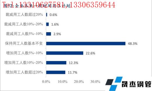 6、目前企業(yè)在崗員工人數(shù)與實(shí)際需求基本匹配的占比為48.0%,35.5%的企業(yè)目前在崗員工人數(shù)與實(shí)際需求相比存在少量的缺口,46.6%的企業(yè)在未來一段時間內(nèi)有增加用工人數(shù)的計(jì)劃,由此可見未來一段時間內(nèi)行業(yè)用工需求依然較大,僅僅只有5.1%的企業(yè)未在崗員工人數(shù)超過實(shí)際需求,預(yù)計(jì)未來一段時間會有少量的人員裁減計(jì)劃。