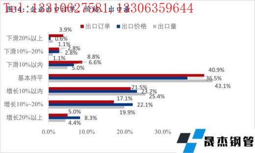 據(jù)調(diào)研,35.5%的樣本企業(yè)有出口業(yè)務(wù),出口業(yè)務(wù)比重大多集中在20%以內(nèi)。40.9%的企業(yè)出口訂單量較去年同期比基本持平,43.6%的企業(yè)出口訂單量同比有增長,15.5%的企業(yè)出口訂單同比有下降,主要是受全球疫情,以及中美貿(mào)易摩擦的影響。36.5%的企業(yè)出口價(jià)格較去年同期比基本持平,53.6%的企業(yè)出口價(jià)格同比有上漲,9.9%的企業(yè)出口價(jià)格同比出現(xiàn)下降。43.1%的企業(yè)出口量較去年同期比基本持平,49.7%的企業(yè)出口量同比有增長,主要是產(chǎn)品的類別和客戶都有增加,7.2%的企業(yè)出口量同比有所下滑,主要是受外幣貶值以及疫情影響下運(yùn)輸成本提高的個影響。