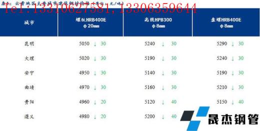 【今日價(jià)格】從云貴主要城市建筑厚壁無縫鋼管價(jià)格來看,今日云南建筑厚壁無縫鋼管市場價(jià)格下跌30元/噸,貴州建筑厚壁無縫鋼管市場價(jià)格下跌20-40元/噸。