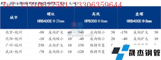 從區(qū)域價(jià)差來看,今日華北地區(qū)與杭州市場(chǎng)螺紋鋼價(jià)差繼續(xù)反向擴(kuò)大;東北、華中地區(qū)與杭州市場(chǎng)價(jià)差繼續(xù)縮小;華南地區(qū)與杭州市場(chǎng)螺紋鋼價(jià)差正向擴(kuò)大。