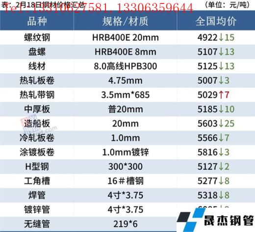 建筑厚壁無縫鋼管:2月18日,全國31個主要城市20mm三級抗震螺紋鋼均價4922元/噸,較上個交易日跌15元/噸。短期來看,目前市場基本面仍然不穩(wěn),情緒驅動價格波動較大。短期還需要關注需求復蘇及累庫速度。預計下周國內(nèi)建筑厚壁無縫鋼管價格或將繼續(xù)窄幅調(diào)整。