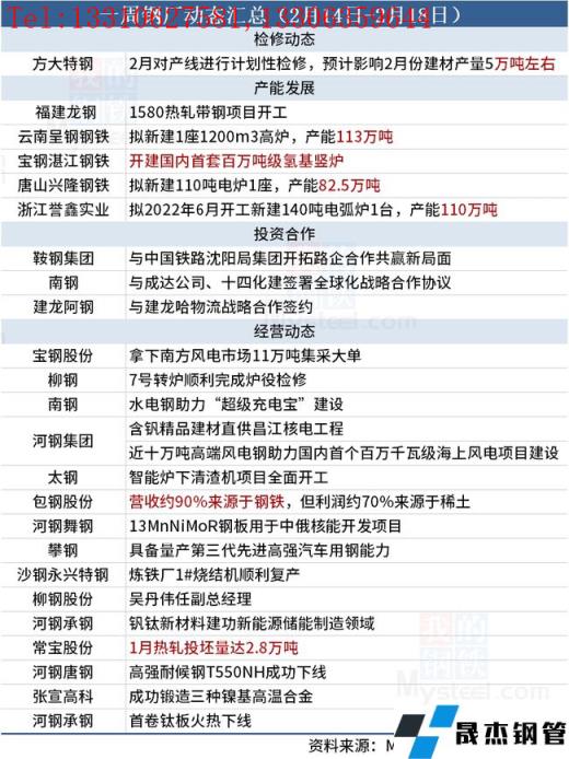 免責聲明:本網站(山東聊城晟杰無縫鋼管廠m.maturesexus.com)刊載的“一周無縫鋼管廠家動態匯總(2月14日-2月18日)”等均源于網絡,版權歸原作者所有,且僅代表原作者觀點,本文所載信息僅供參考。轉載僅為學習與交流之目的,如無意中侵犯您的合法權益,請及時聯系刪除。本網站刊登此篇文章并不意味著本站贊同其觀點或證實其內容的真實性,我們不對其科學性、嚴肅性等作任何形式的保證。如果侵犯了您的版權,請盡快聯系我們予以撤銷,謝謝合作!