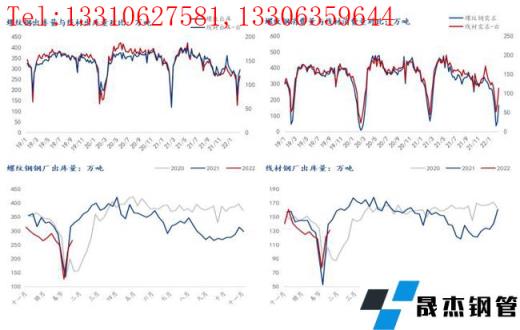對比螺紋鋼和線材出庫量趨勢波動規(guī)律來看,線材在拐點變化上較螺紋鋼表現(xiàn)較為提前,這與終端使用厚壁無縫鋼管先后順序所導(dǎo)致的。這也就意味著,在線材出庫量波動出現(xiàn)逐級上升趨勢時,螺紋鋼出庫也會隨之緩慢回升,這與終端用剛需求和節(jié)奏基本一致。