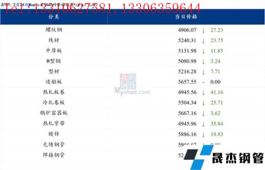 2月24日普鋼絕對價格指數(shù)變化:綜合指數(shù)5127.14,下跌26.07;螺紋鋼指數(shù)4906.07,下跌27.23;線材指數(shù)5240.31,下跌23.75;熱軋板卷指數(shù)4945.56,下跌41.16;冷軋板卷指數(shù)5504.34,下跌25.71;中厚板指數(shù)5131.98,下跌11.85。