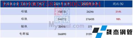 據統計,2021年國內硅錳、硅鐵、錳鐵、電解錳合金出口量均有不同程度的抬升,得益于2021年全球粗鋼產量的增加,(19.505億噸,同比提高3.7%)。
