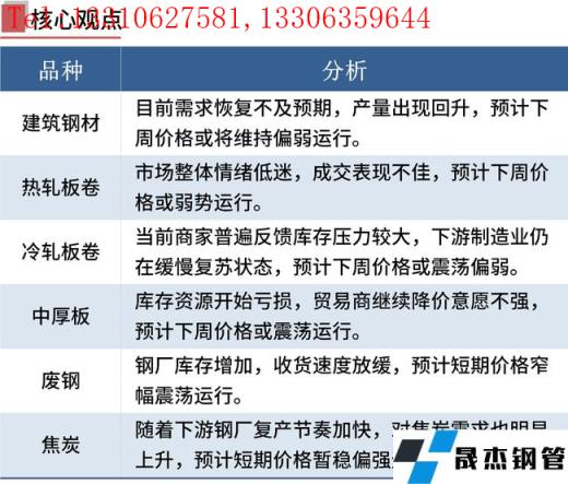 一方面,本周無縫厚壁鋼管廠家及下游終端仍處于復(fù)工復(fù)產(chǎn)進(jìn)程,但工地復(fù)工率低于去年同期,無縫厚壁鋼管廠家及社會庫存均出現(xiàn)攀升,供需壓力偏大,鋼價承壓下跌。另一方面,隨著無縫厚壁鋼管廠家持續(xù)復(fù)產(chǎn),對原燃料需求增加,鐵礦石港庫及獨(dú)立焦企庫存均出現(xiàn)下降,后期原燃料價格有支撐。此外,電弧爐無縫厚壁鋼管廠家處于盈虧邊緣,鋼價下跌空間或有限。綜合來看,短期鋼價或震蕩偏弱運(yùn)行。