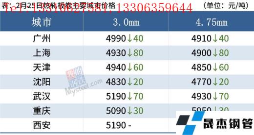 熱軋板卷:2月25日,全國24個主要城市4.75mm熱軋板卷均價4969元/噸,較上個交易日下跌33元/噸。目前來看,需求大概率延遲或不如預(yù)期,加之市場情緒再受沖擊,價格支撐性略顯不足。綜合來看,預(yù)計(jì)下周熱軋板卷價格或弱勢運(yùn)行為主。