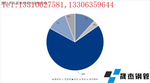 從我國厚壁無縫鋼管出口品種構成來看(以2021年為例),我國厚壁無縫鋼管出口主要以板材為主,約占出口總量的68%;其次棒線材及管材,約占總出口量的12%,11%。