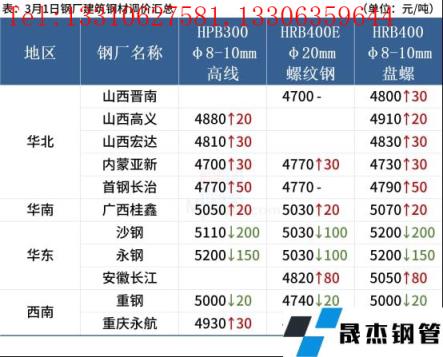 1日,8家無縫厚壁鋼管廠家上調建筑厚壁無縫鋼管出廠價20-80元/噸,沙鋼等3家無縫厚壁鋼管廠家下調出廠價20-200元/噸。