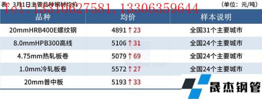 ◎ 首鋼京唐計劃于3月2日對一條1580mm熱軋生產線做檢修,為期11天,總影響產量約在11萬噸左右;并預計于3月3日對一座5500m3高爐進行檢修至3月7日結束,為期5天左右,影響鐵水產量總計在6萬噸左右;此外還計劃于3月2日對酸連軋生產線做檢修,為期8天,總影響產量約在5萬噸左右。