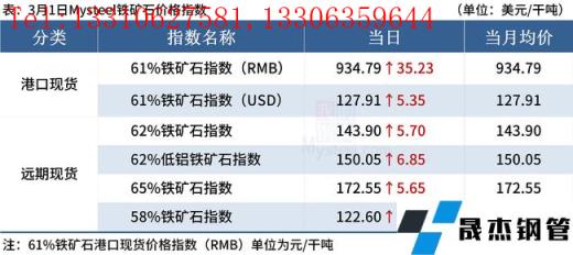 ◎ 3月1日,全國主港鐵礦石成交98萬噸,環比減6.7%;237家主流貿易商建材成交20.90萬噸,環比增23.1%。
