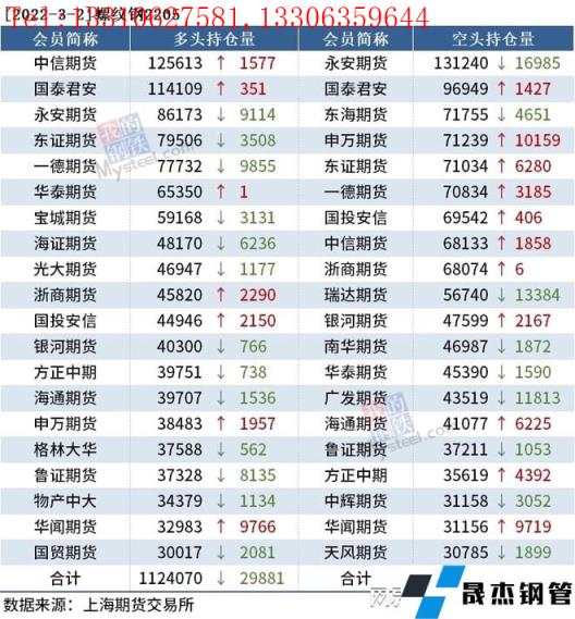 各品種持倉情況具體如下: