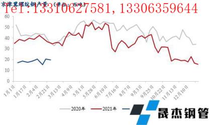 從上圖可以看出,2月份京津冀建材無縫厚壁鋼管廠家的螺紋鋼產(chǎn)量持續(xù)在低位徘徊,整體產(chǎn)量提升較有限,截至2月底,螺紋鋼周產(chǎn)量為19.69萬噸,產(chǎn)能利用率僅為21.04%,其中敬業(yè)、鋼、樂鋼、新興鑄管等有螺紋鋼產(chǎn)線在產(chǎn),另外鑫達無縫厚壁鋼管廠家螺紋鋼軋線間歇性生產(chǎn)。3月份,承鋼、樂鋼等在月初陸續(xù)恢復正常,全月產(chǎn)量提高超30%。受冬殘奧會影響,個別無縫厚壁鋼管廠家復產(chǎn)或推遲,不過在3月下旬,京津冀建材無縫厚壁鋼管廠家將陸續(xù)恢復正常,螺紋鋼產(chǎn)量將有所提高,考慮到建龍系資源投放將收尾,對北京市場的資源投放量有限,因此預計3月份北京市場的資源投放量或增加至65萬噸左右。