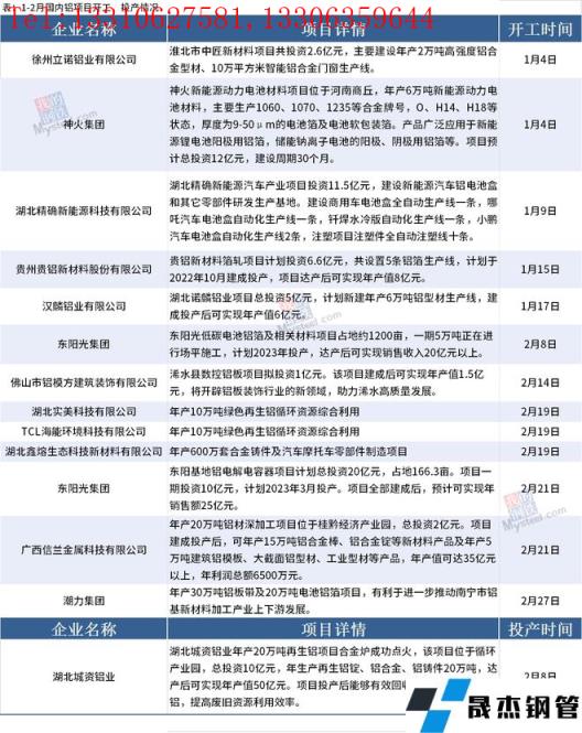 免責聲明:本網站(山東聊城晟杰無縫鋼管廠m.maturesexus.com)刊載的“1-2月國內鋁項目開工、投產情況”等均源于網絡,版權歸原作者所有,且僅代表原作者觀點,本文所載信息僅供參考。轉載僅為學習與交流之目的,如無意中侵犯您的合法權益,請及時聯系刪除。本網站刊登此篇文章并不意味著本站贊同其觀點或證實其內容的真實性,我們不對其科學性、嚴肅性等作任何形式的保證。如果侵犯了您的版權,請盡快聯系我們予以撤銷,謝謝合作!