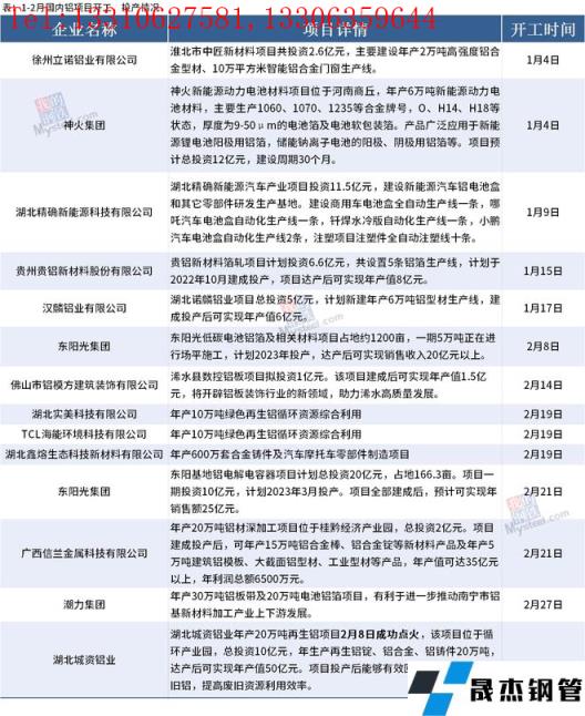 免責聲明:本網站(山東聊城晟杰無縫鋼管廠m.maturesexus.com)刊載的“1-2月國內鋁項目開工、投產情況”等均源于網絡,版權歸原作者所有,且僅代表原作者觀點,本文所載信息僅供參考。轉載僅為學習與交流之目的,如無意中侵犯您的合法權益,請及時聯系刪除。本網站刊登此篇文章并不意味著本站贊同其觀點或證實其內容的真實性,我們不對其科學性、嚴肅性等作任何形式的保證。如果侵犯了您的版權,請盡快聯系我們予以撤銷,謝謝合作!