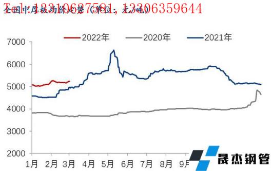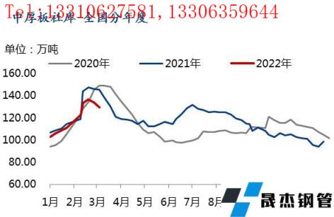 另一方面,21年四季度末無(wú)縫厚壁鋼管廠家品種鋼訂單轉(zhuǎn)好,很多無(wú)縫厚壁鋼管廠家對(duì)內(nèi)部品種結(jié)構(gòu)進(jìn)行了調(diào)整,以減少流通材,增加直供量為主,這一點(diǎn)也從我們節(jié)前一些品種鋼價(jià)格漲幅也能看出,包括橋梁板、高建鋼,Q355C, Q355D板等等,這些品種節(jié)前價(jià)格漲幅均高于普板和低合金板。所以進(jìn)一步導(dǎo)致市場(chǎng)流通材的量在減少,這一點(diǎn),也可以從我們今年春節(jié)后的社會(huì)庫(kù)存能夠得到驗(yàn)證。今年春節(jié)后的中板社會(huì)庫(kù)存大幅低于去年同期,還有一方面原因是,今年大家冬儲(chǔ)的意愿非常低,投機(jī)性訂貨量較去年有明顯下降,多以協(xié)議量到貨為主。